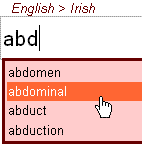 You can use our double-click plug-in to look up words from your own browser using the double-click feature – see Can I get the New English-Irish Dictionary on my browser toolbar?