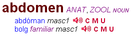 Where a sound file is available for a translation, it’s always provided in each of the three major dialects – Connacht, Munster and Ulster. Depending on which dialect you wish to hear, simply click on the letter C, M or U respectively, immediately beside the speaker icon.